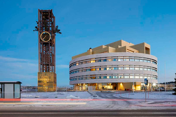 En respuesta a esta amenaza, la empresa minera Luossavaara-Kiirunavaara (LKAB) propuso una solución directa: mover Kiruna tres kilómetros al este. En cierto sentido, y en ocasiones literalmente, reciclando la ciudad misma. El ayuntamiento existente de Kiruna, diseñado por el arquitecto sueco Arthur von Schmalensee, recibe una nueva vida en The Crystal. El diseño de Henning Larsen incorpora el icónico campanario de 1958, que representa no solo una reimaginación visual de la identidad de Kiruna, sino una continuación física de la historia de la ciudad.