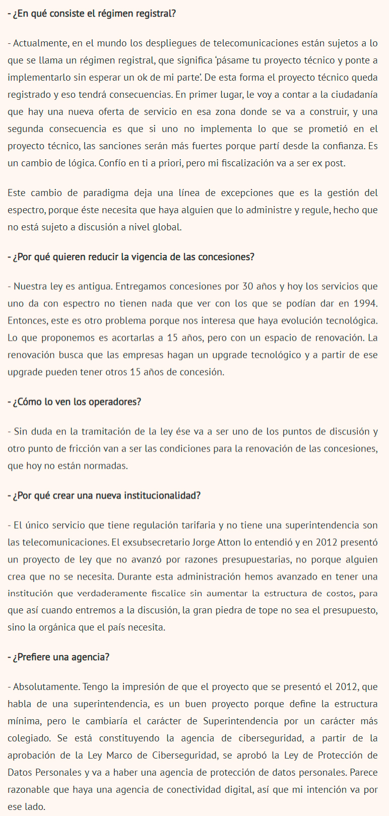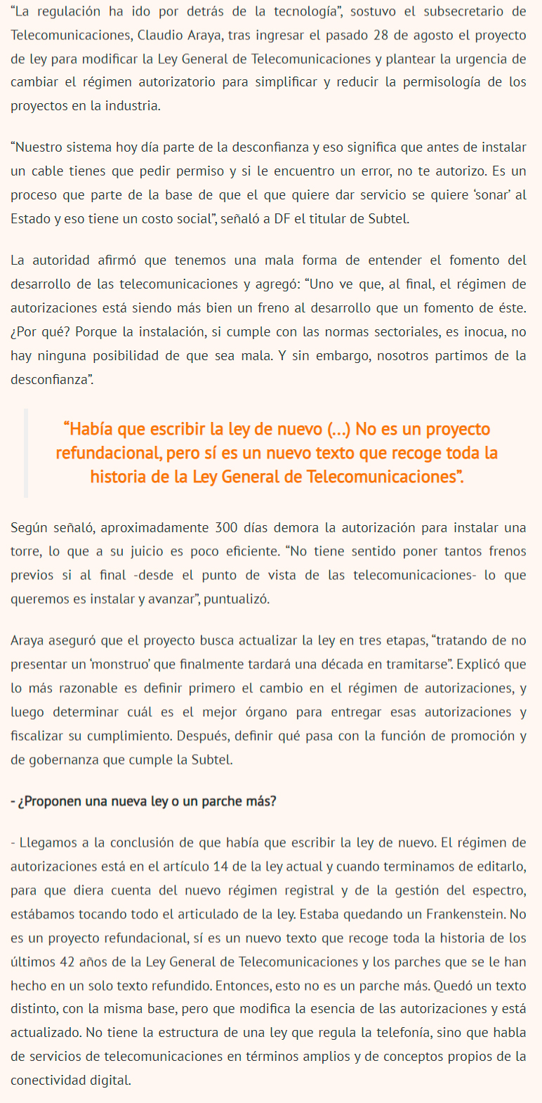 DIARIO FINANCIERO – “Había que escribir la ley de nuevo (…) No es un proyecto refundacional, pero sí es un nuevo texto que recoge toda la historia de la Ley General de Telecomunicaciones”