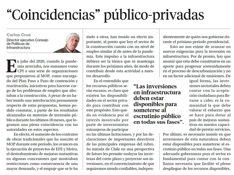 LA SEGUNDA – Las inversiones en infraestructura deben estar disponibles para someterse al escrutinio público en todas sus fases.