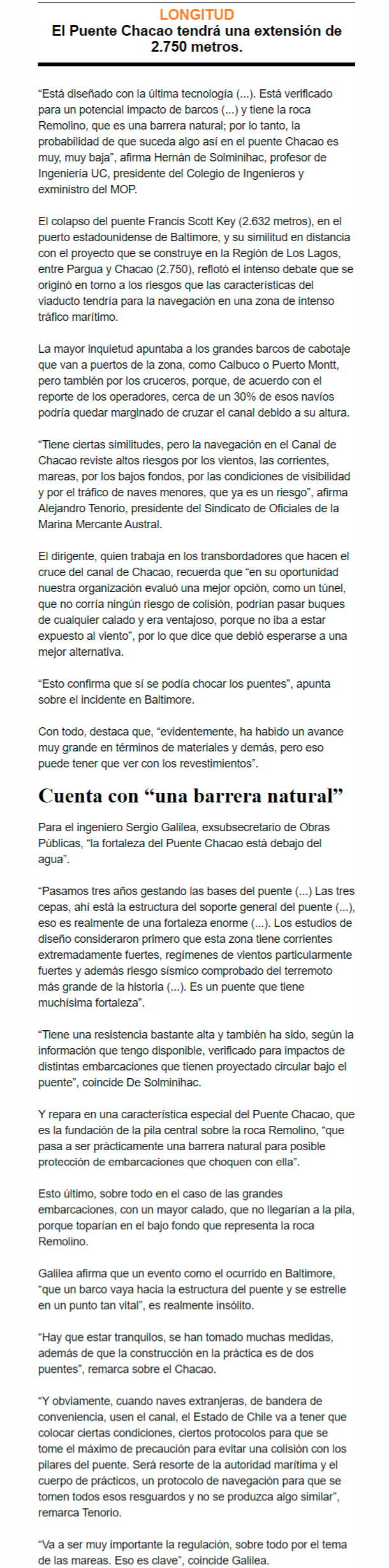 EL MERCURIO – Especialistas ven poco probable que un incidente similar pueda ocurrir en el viaducto, diseñado para condiciones de intensos vientos y fuertes mareas, pero reglas de navegación serán claves