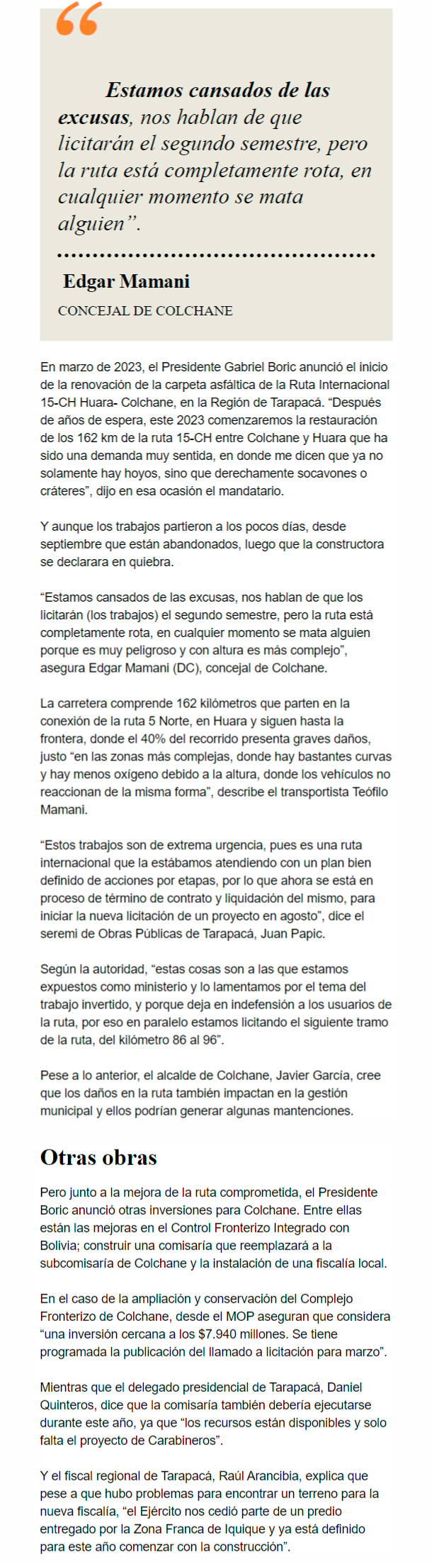 EL MERCURIO – el año pasado también se comprometieron inversiones para un complejo fronterizo, una fiscalía y una comisaría. Y ninguno de esos trabajos ha comenzado.