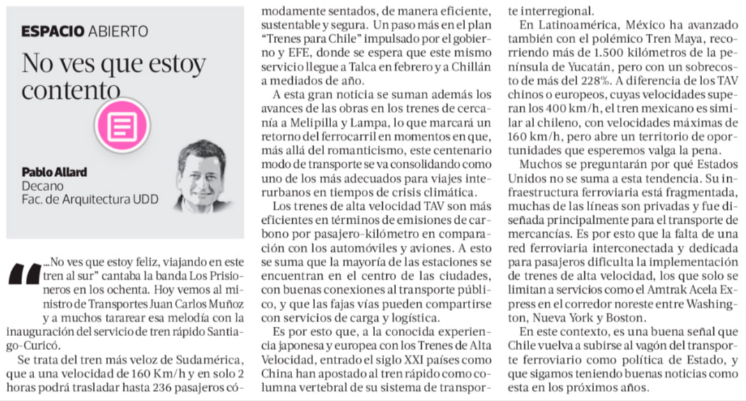 LA TERCERA – Un paso más en el plan “Trenes para Chile” impulsado por el gobierno y EFE, donde se espera que este mismo servicio llegue a Talca en febrero y a Chillán a mediados de año.
