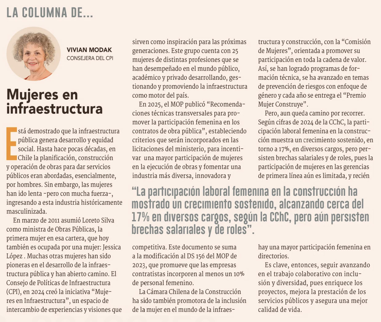 Columna de Vivian Modak – Mujeres en Infraestructura