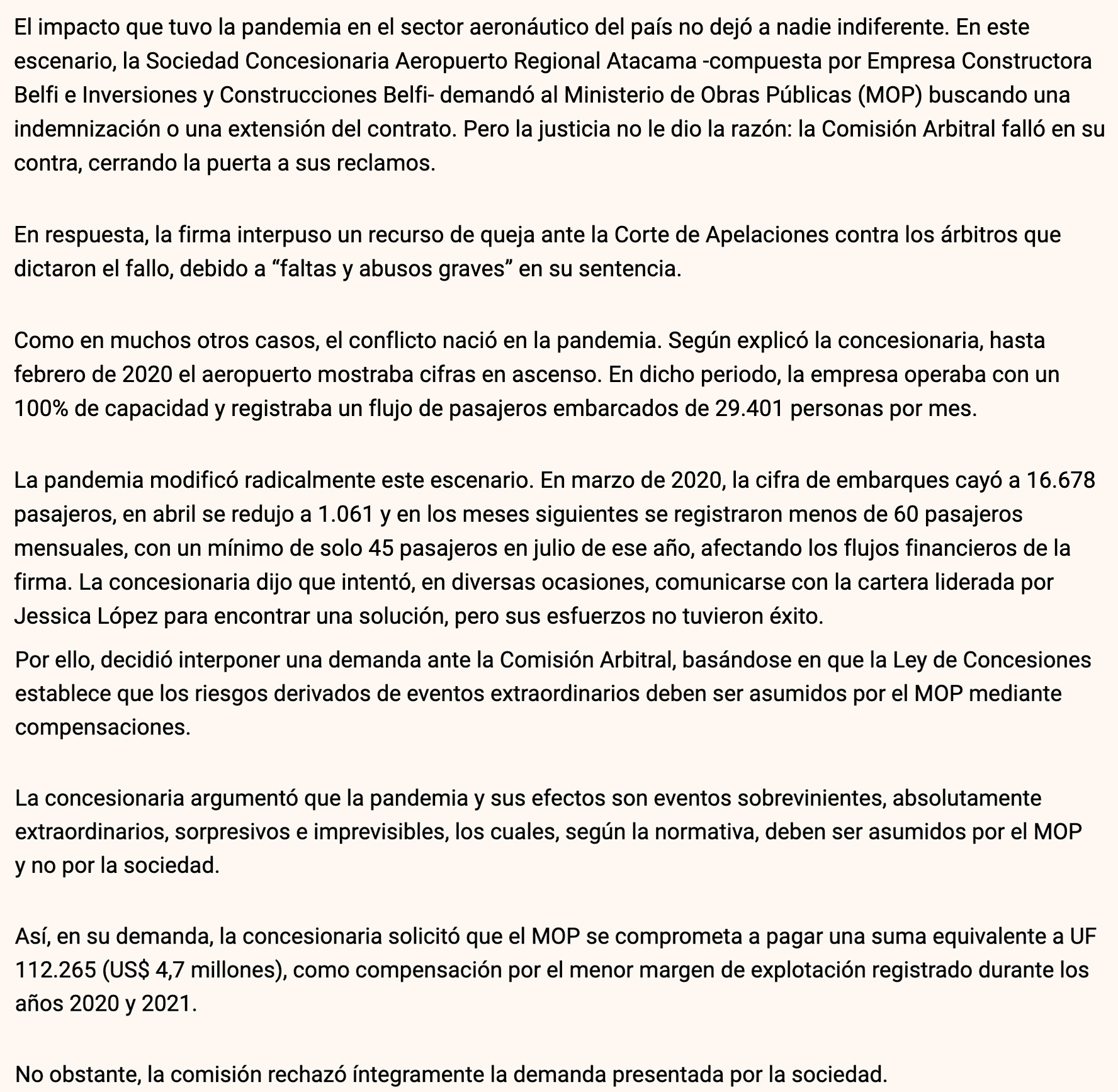 DIARIO FINANCIERO – En respuesta, la firma interpuso un recurso de queja en la Corte de Apelaciones contra los árbitros que dictaron el fallo, debido a “faltas y abusos graves” en su sentencia.