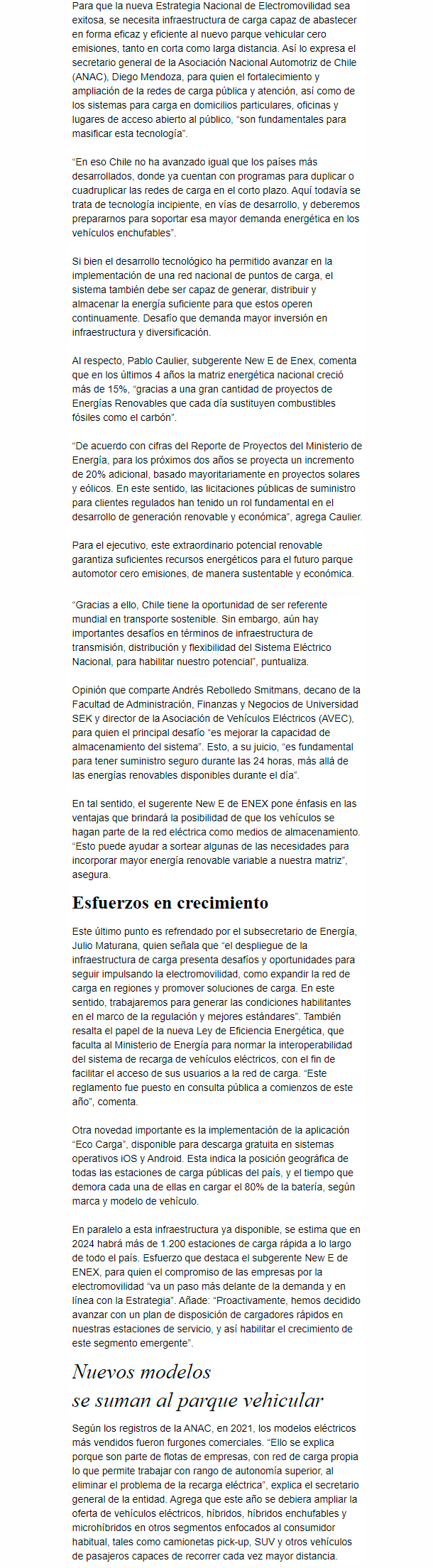 EL MERCURIO – Cumplir los plazos establecidos en la actual agenda público-privada exige incrementar la red de estaciones de carga rápida y generar más incentivos para la compra y uso.