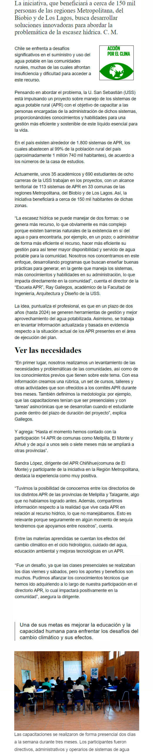 EL MERCURIO – La iniciativa busca desarrollar soluciones innovadoras para abordar problemáticas de escasez hídrica.