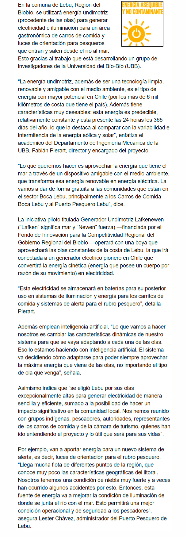 EL MERCURIO – Investigadores desarrollan un generador eléctrico pionero en Chile, que por ahora está en fase de prueba.