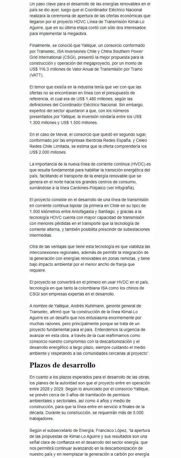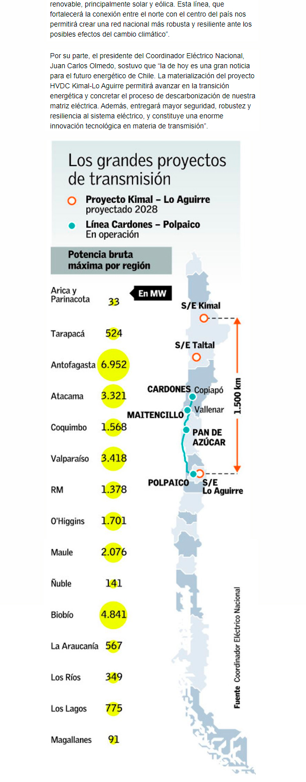 EL MERCURIO – Se trataría de una propuesta de entre US$ 1.300 y US$ 1.500 millones, y es una obra clave para la transición energética y la masificación de las energías renovables.