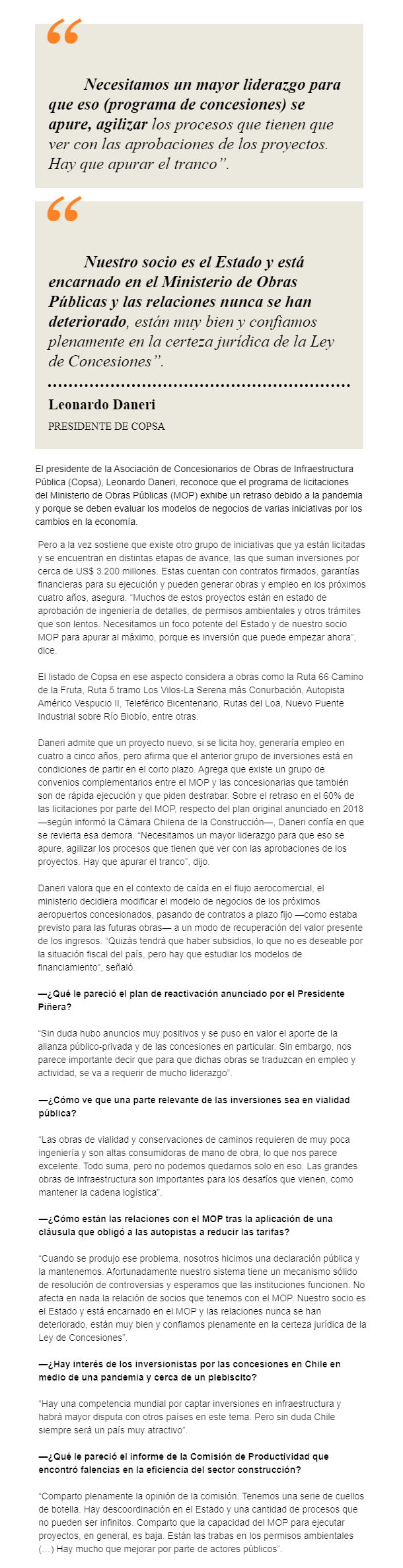 Concesionarias de infraestructura piden acelerar obras por US$ 3.200 millones