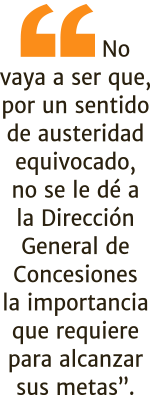 Una industria regulada como la de concesiones requiere de una contraparte institucional dimensionada de acuerdo a su importancia y tamaño. No vaya a ser que, por un sentido de austeridad equivocado, no se le dé a la DGC la importancia que requiere para cumplir con las metas que se le han asignado, corriendo el riesgo de frustrar la consecución de los objetivos o de colapsar en el intento.