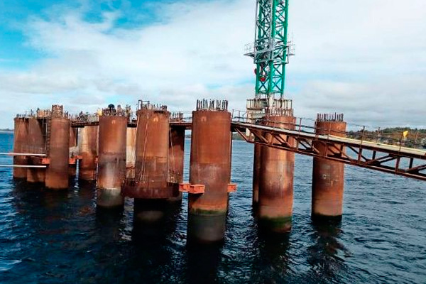 Y ayer se movió hacia Pargua la plataforma que ahora apoyará una faena similar para la pila norte, que también irá en el agua.
