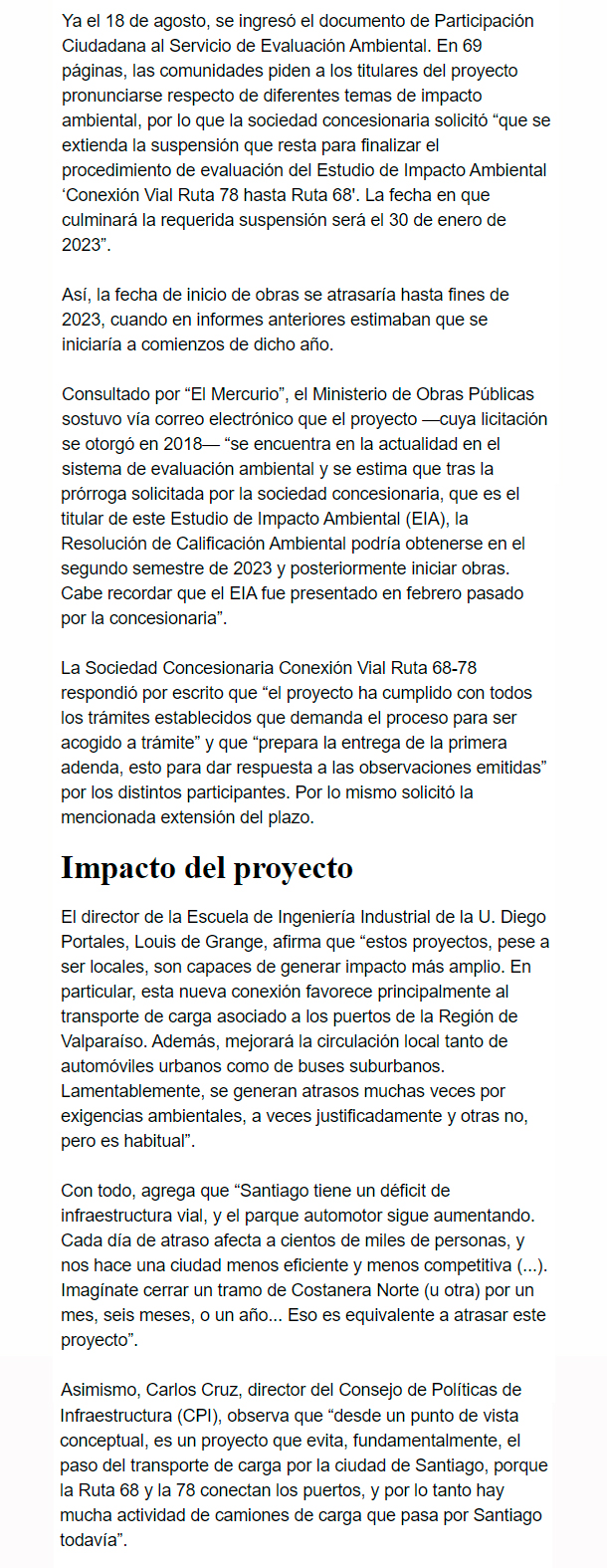 EL MERCURIO – “Estos proyectos de tamaño tan grande y de tanta envergadura tienen que contemplar los efectos que le causan a su entorno. Es prudente demorarse un poco más”, Carlos Cruz, director ejecutivo del CPI.