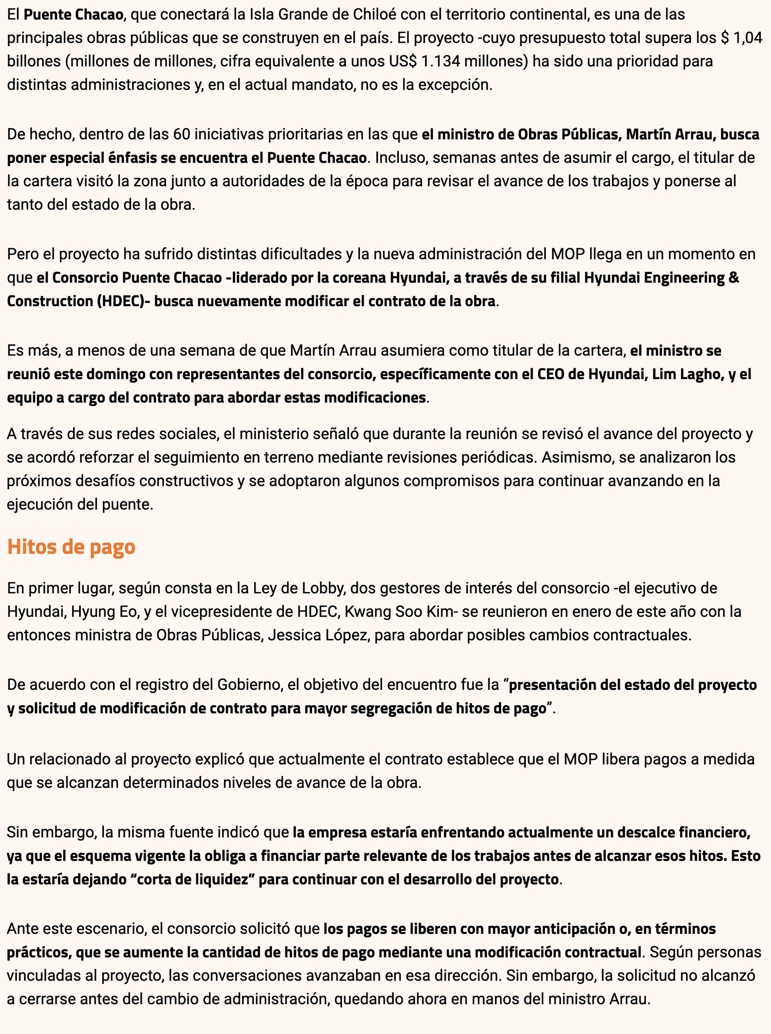 DIARIO FINANCIERO – La obra debería entrar en operación en 2028, pero Hyundai plantearía postergar esa fecha mediante una modificación contractual. Este domingo el ministro Arrau recibió a ejecutivos de la coreana