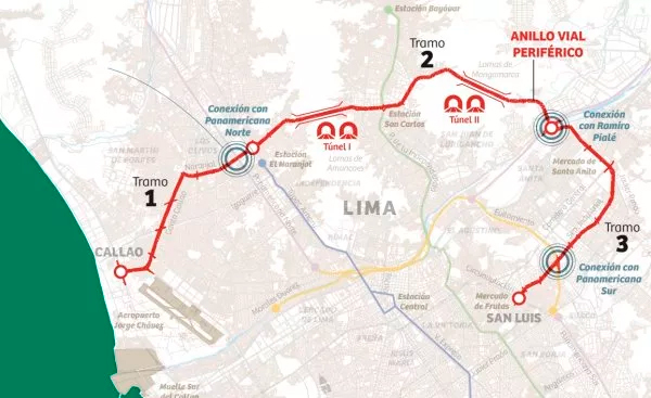 La iniciativa, impulsada por la Agencia de Promoción de la Inversión Privada de Perú (Proinversión) y el Ministerio de Transportes y Comunicaciones del país andino, contempla la instalación de una arteria urbana de peaje de 34,8 kilómetros, a partir de un plan de inversión de US$ 3.400 millones.