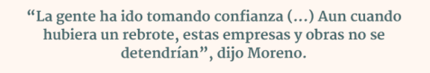 Las inmobiliarias ven con incertidumbre lo que pueda pasar este verano. El gerente inmobiliario y socio de Exxacon, Pablo Arentsen, comentó que “hoy es una realidad que una paralización como la que vivimos a comienzos de año afectaría el avance y desarrollo de las obras en ejecución, pero lo aprendido sirve mucho para proyectar lo que viene”.