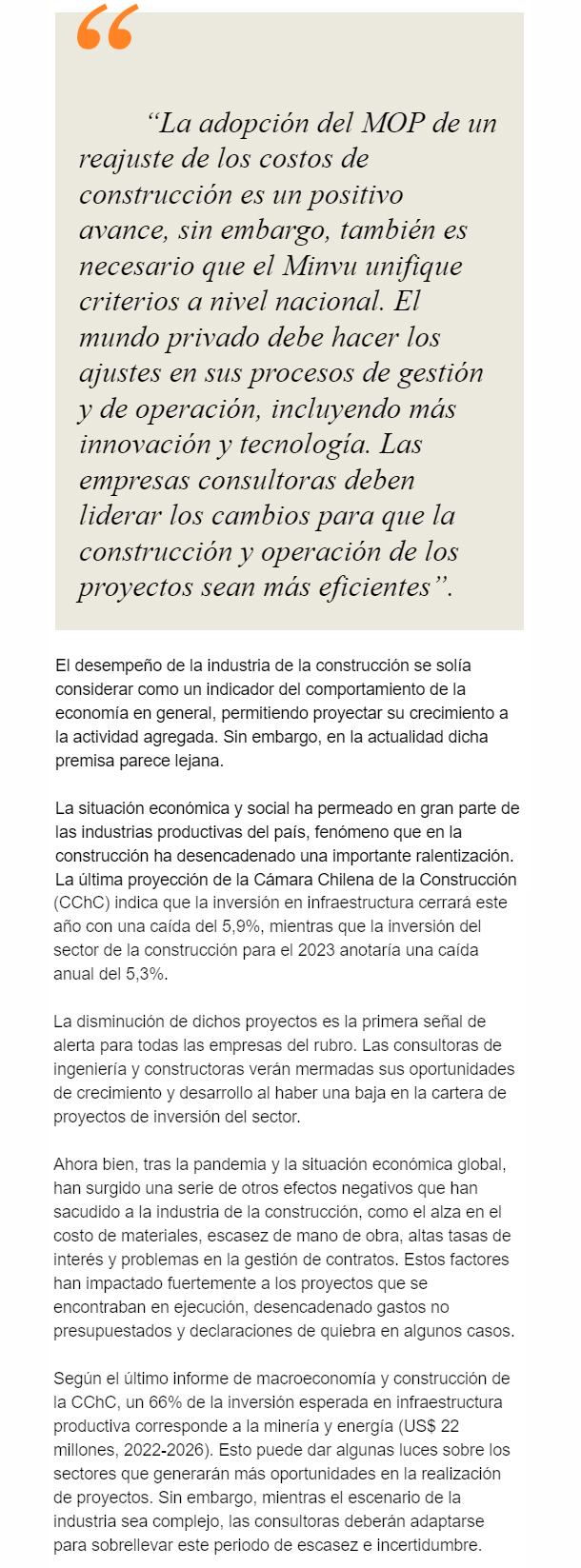 EL MERCURIO – Las consultoras de ingeniería y constructoras verán mermadas sus oportunidades de crecimiento y desarrollo al haber una baja en la cartera de proyectos de inversión del sector.
