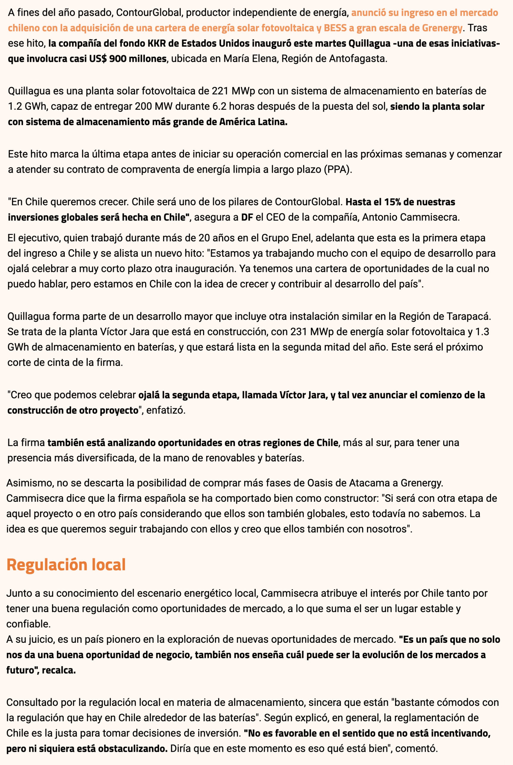 DIARIO FINANCIERO – Su CEO, Antonio Cammisecra precisó que hasta el 15% de sus inversiones globales será en Chile. El país no solo da una buena oportunidad de negocio, “también nos enseña cuál puede ser la evolución de los mercados a futuro”.
