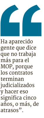 -El MOP tiene una institucionalidad para sus contratos que es una camisa de fuerza que no le permite resolver los problemas que hay ahora. Es una institucionalidad para hace 20 o 30 años: me refiero a su reglamento de contratos para obras públicas y la Contraloría. Entonces, qué está sucediendo, que ha aparecido gente que dice que no trabaja más para el MOP, porque los contratos terminan judicializados y hacer eso significa cinco años, o más, de atrasos.
