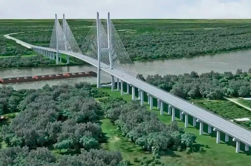 Pero sin duda la obra que llama más la atención es la construcción del puente internacional que unirá las ciudades de Carmelo Peralta y Puerto Murtinho en Brasil.