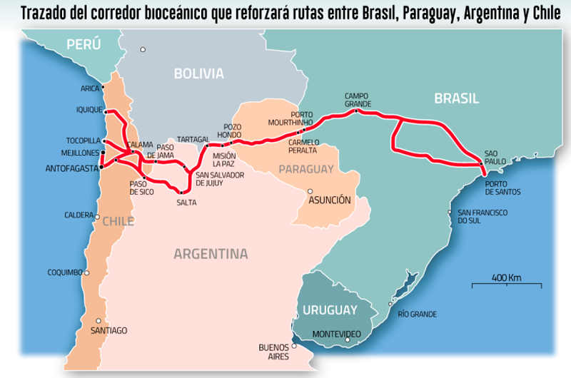 Paraguay ha sido muy activo en el desarrollo del corredor porque, pese a que no se espera que tenga un efecto inmediato en mayor movimiento de carga, el potencial para atraer inversiones es muy alto. De hecho, los avances de esta obra, que permiten agilizar el movimiento de carga del centro del continente, serán analizados en una reunión que se realizará en los próximos días en Antofagasta, región del norte de Chile que tiene los puertos por donde podrían salir los productos.