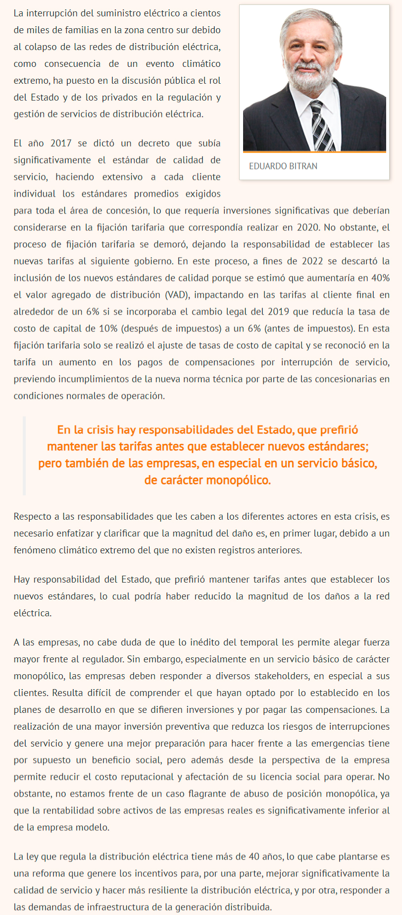 DIARIO FINANCIERO – En la crisis hay responsabilidades del Estado, que prefirió mantener las tarifas antes que establecer nuevos estándares; pero también de las empresas, en especial en un servicio básico, de carácter monopólico.
