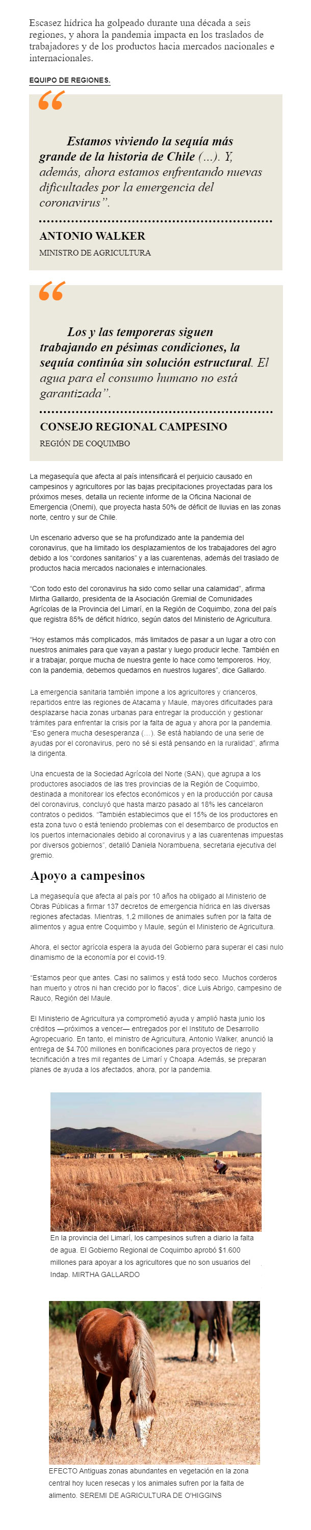 Covid-19 profundiza crisis en la agricultura causada por histórica megasequía en el país
