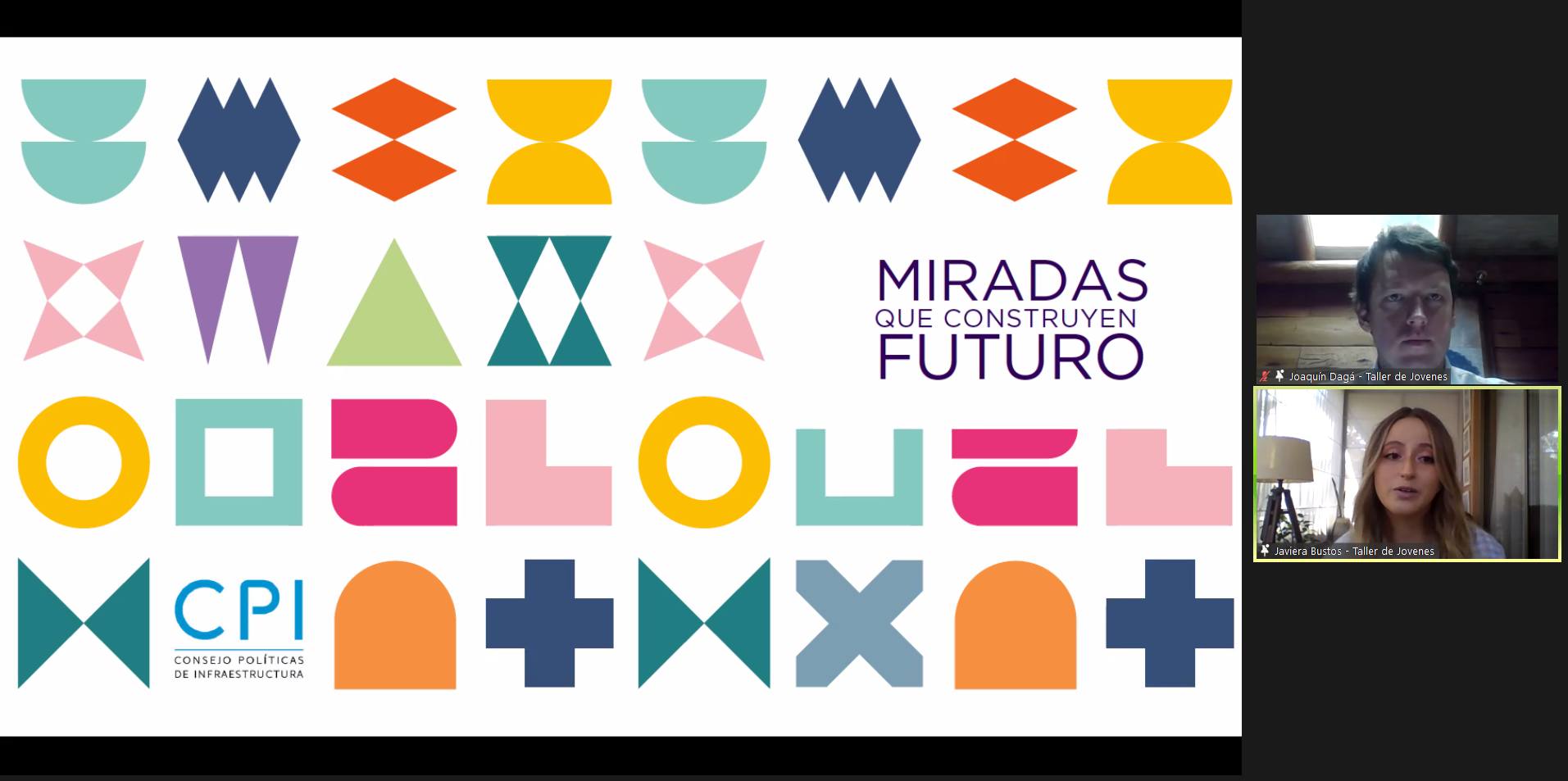 Los resultados del trabajo del taller fueron presentados por Javiera Bustos y Joaquín Dagá. Comentaron las presentaciones Juan Manuel Sánchez, director general de Concesiones y Juan José Ugarte, presidente de la Corma. Junto a ellos participó Victoria Mira quien fue parte del segundo taller de jóvenes y que hoy forma parte del Consejo del CPI.