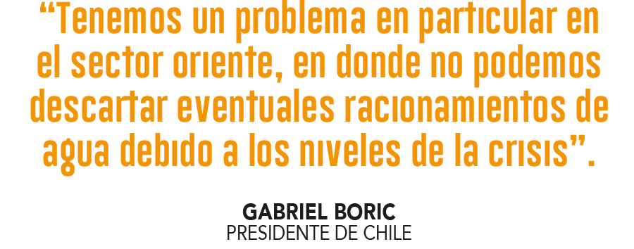 “Cuando he dicho ‘no es solo sequía, también es saqueo’, lo reitero”, agregó. En este contexto reveló que el ahora expresidente Piñera, le advirtió respecto del suministro asegurado para las familias hasta el segundo semestre del 2022.