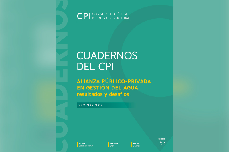 CPI – El presente documento tiene su origen en el evento Alianza Público-Privada en Gestión del Agua: Resultados y Desafíos, organizado por el Consejo de Políticas de Infraestructura, CPI, y efectuado el 22 de enero de 2024. El texto recoge tanto las presentaciones del ex Presidente de la República y presidente del CPI, Eduardo Frei R-T. y de la Ministra de Obras Públicas Jessica López, como el desarrollo de los tres paneles del encuentro y las palabras de cierre de la presidenta de Sofofa, Rosario Navarro.