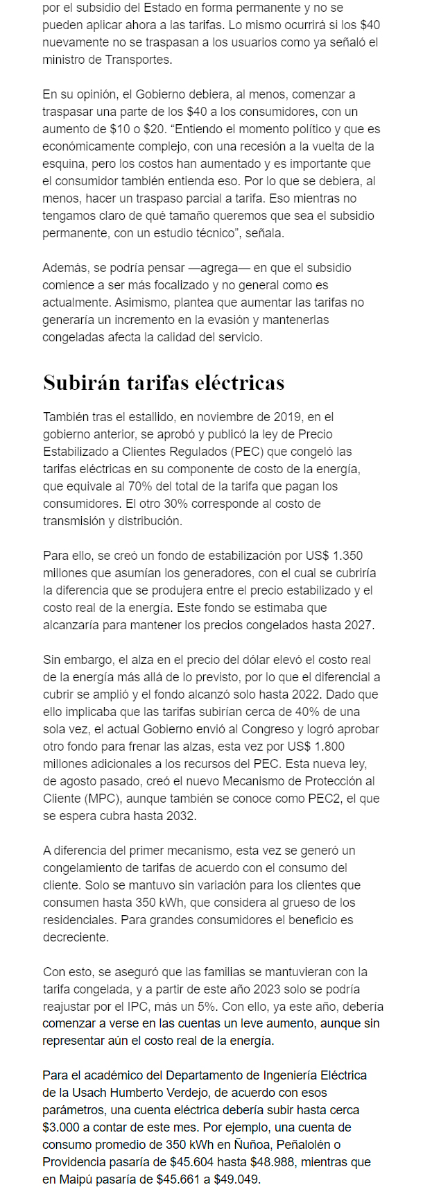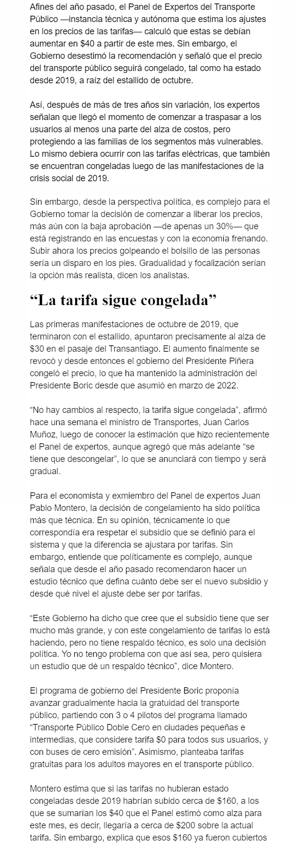EL MERCURIO – En el caso del transporte público, el Gobierno dijo que se mantendrán fijas, mientras que expertos sugieren traspasar a usuarios al menos una parte.