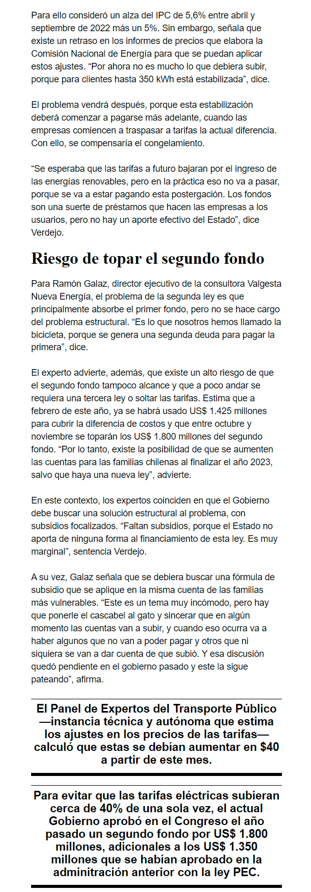 Fuente: El Mercurio, Domingo 15 de Enero de 2023