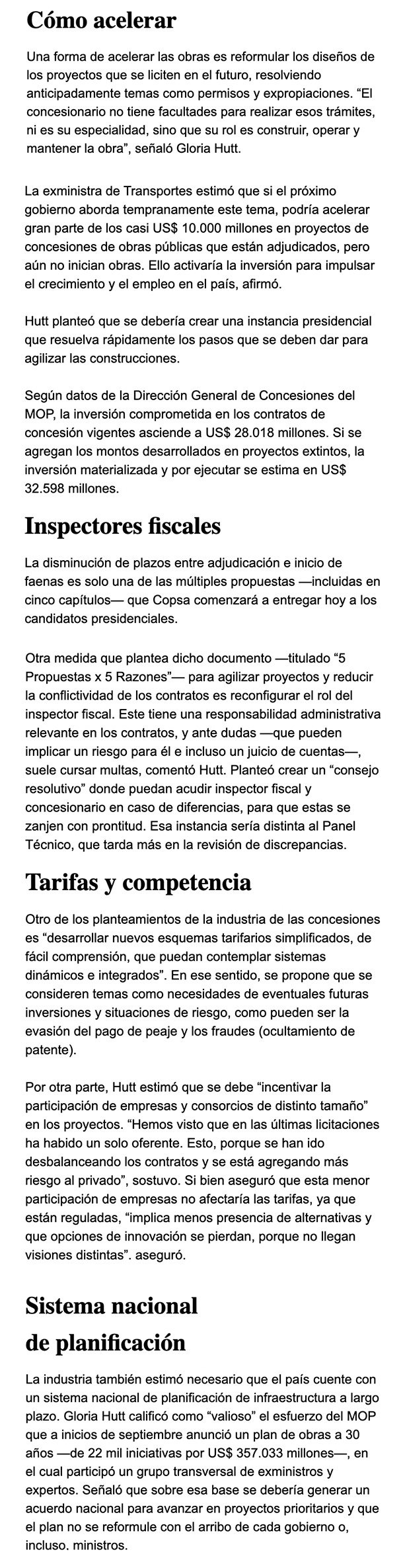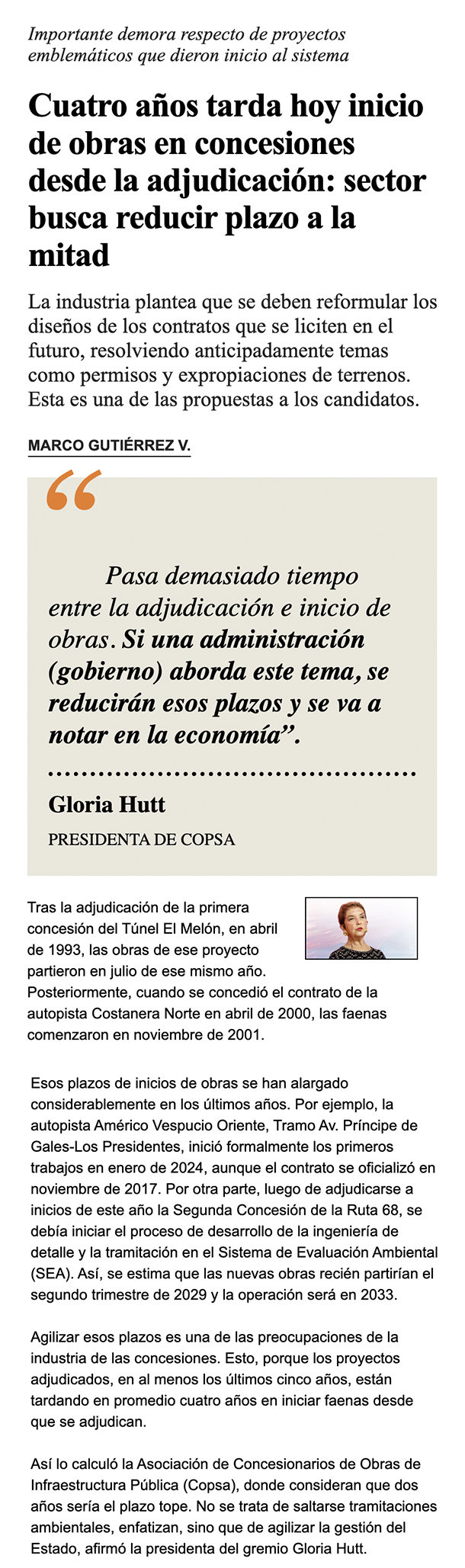 EL MERCURIO – La industria plantea que se deben reformular los diseños de los contratos que se liciten en el futuro, resolviendo anticipadamente temas como permisos y expropiaciones de terrenos. Esta es una de las propuestas de los candidatos.