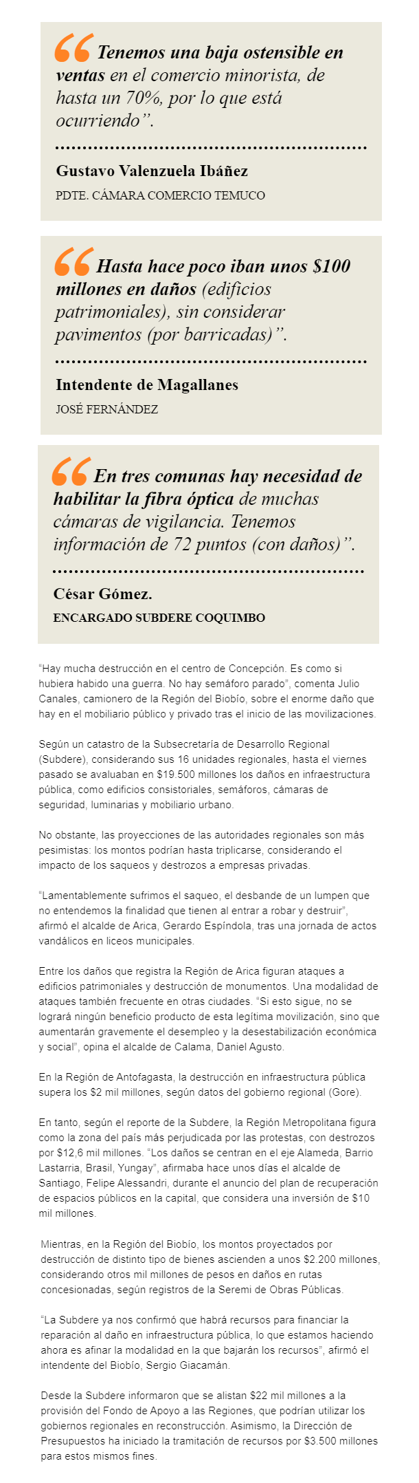 EL MERCURIO – Autoridades regionales estiman que la cifra podría hasta triplicarse en algunas zonas del país, si es que se considera el impacto de saqueos y destrucción en sector privado