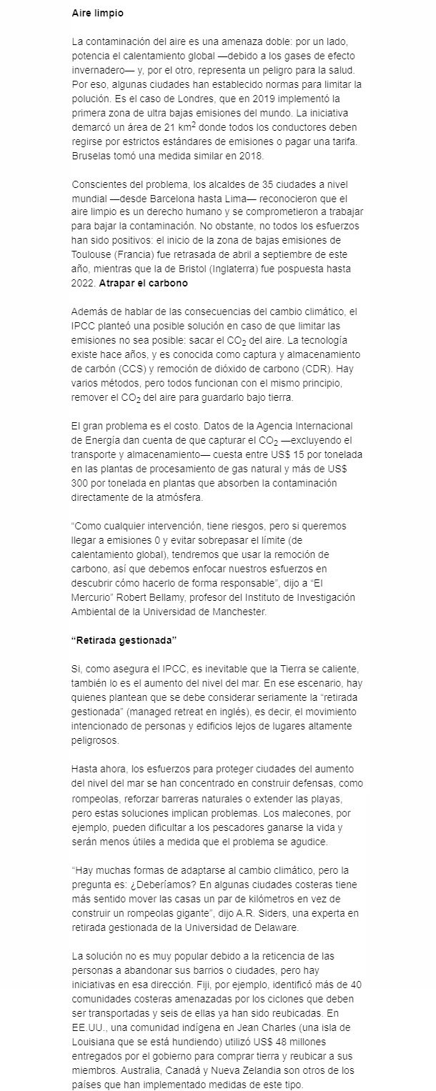 EL MERCURIO – Ciudades ya están implementando medidas para lidiar con las consecuencias del calentamiento global.