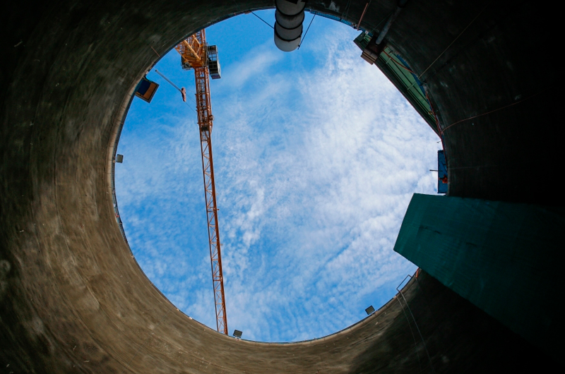 El pique de construcción de la futura estación ubicada en el Parque Araucano fue uno de los primeros frentes de trabajo de Línea 7 en iniciar obras el 2022, constituyendo el que está más avanzado en las obras de excavación.