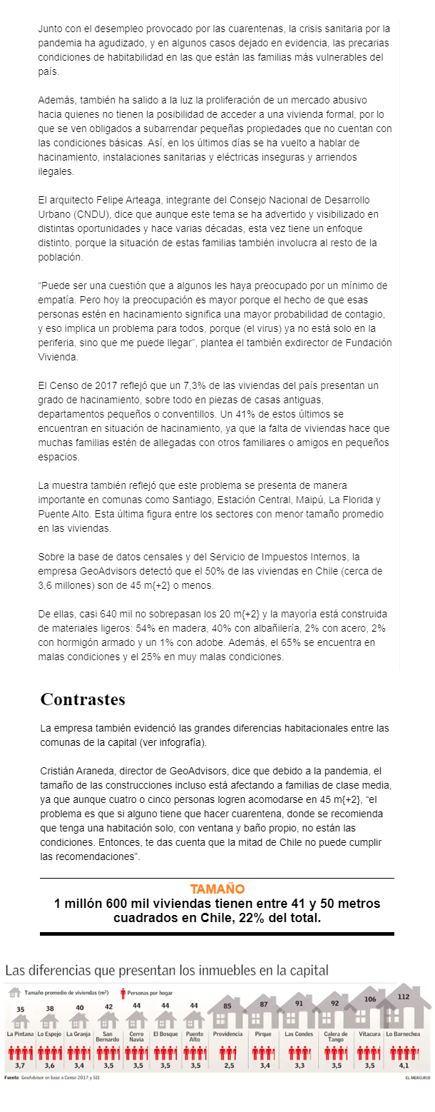 EL MERCURIO – La pandemia volvió a evidenciar las precarias condiciones en las que viven miles de familias.