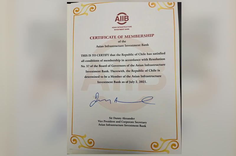 “Nuestro país depositó el instrumento de accesión al Convenio Constitutivo del banco el 16 de abril de 2020. Hoy es miembro pleno de este organismo, consolidando con ello los sólidos lazos que unen a nuestro país con el continente asiático. El ingreso de Chile al BAII podrá fomentar la inversión en infraestructura sostenible y desarrollo de conectividad y logística”, acotó el embajador de Chile en China, Luis Schmidt.