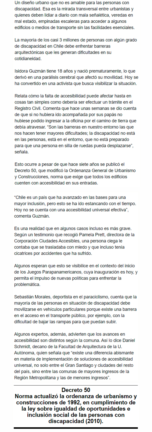 EL MERCURIO – “El entorno no está pensado para que una persona en silla de ruedas pueda desplazarse”.