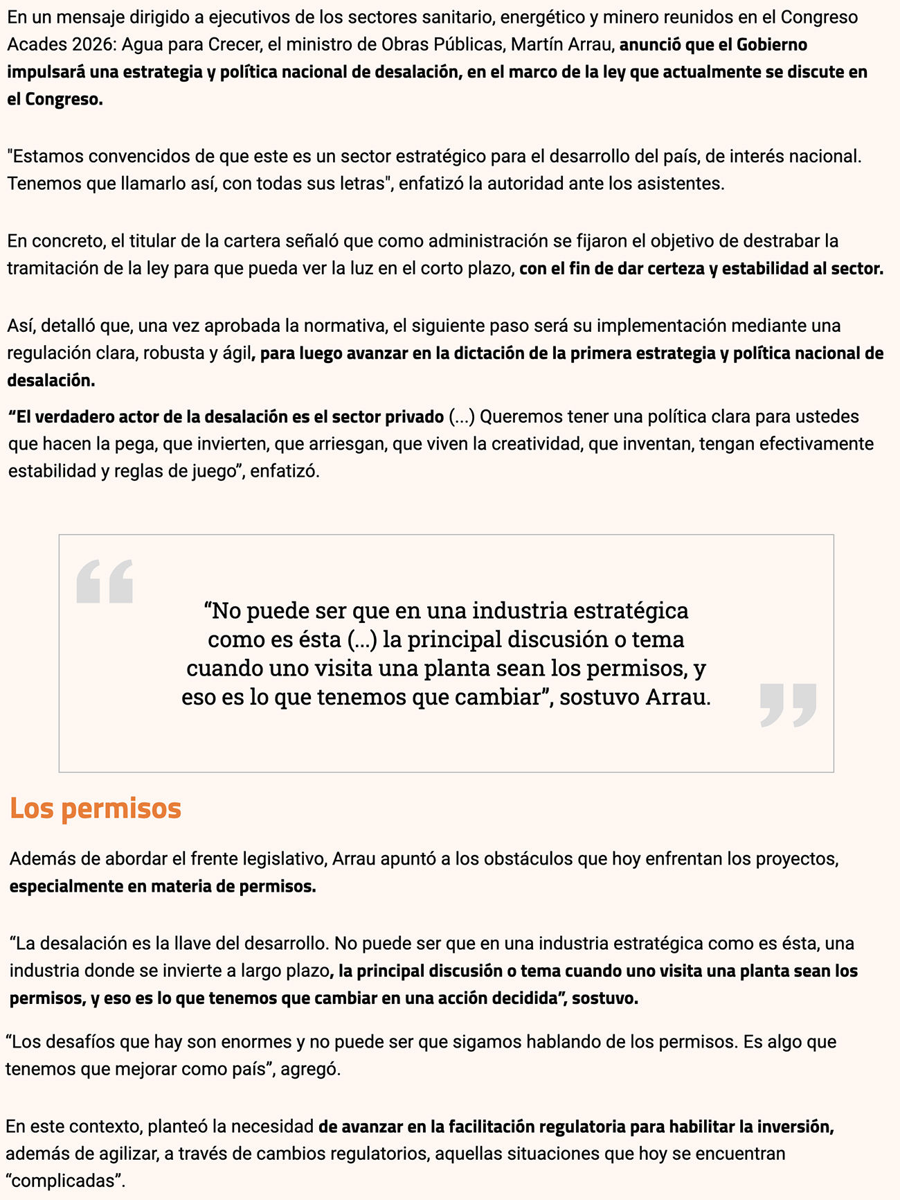 DIARIO FINANCIERO – “Nosotros estamos convencidos de que este es un sector estratégico para el desarrollo del país, de interés nacional. Tenemos que llamarlo así, con todas sus letras”, enfatizó el ministro de Obras Públicas, Martín Arrau