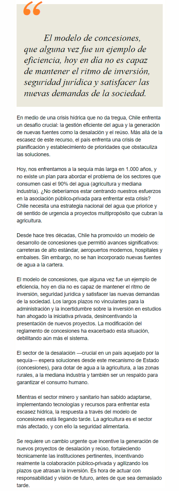 EL MERCURIO – El modelo de concesiones, que alguna vez fue ejemplo de eficiencia, hoy en día no es capaz de mantener el ritmo de inversión, seguridad jurídica y satisfacer las nuevas demandas de la sociedad