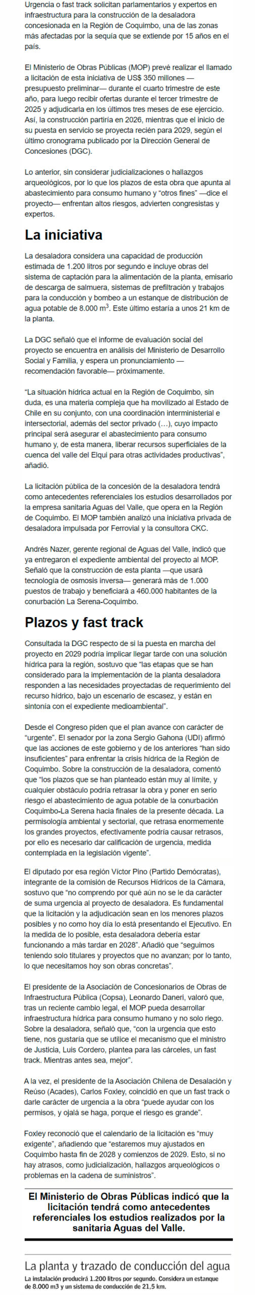 EL MERCURIO – La “permisología” podría retrasar el cronograma del Ejecutivo para desarrollar este proyecto de US$ 350 millones, advierten congresistas y actores privados