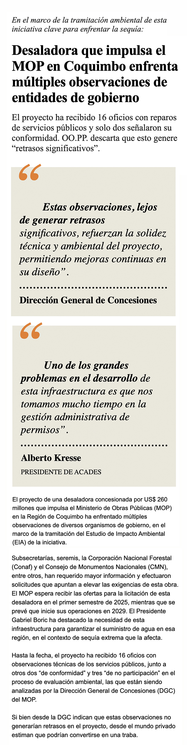 Desaladora que impulsa el MOP en Coquimbo enfrenta múltiples observaciones de entidades de Gobierno