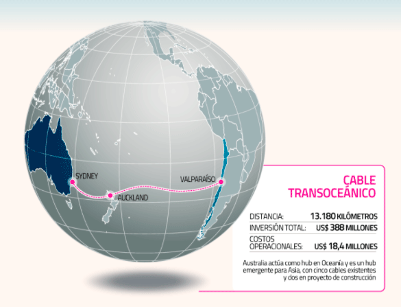 DIARIO FINANCIERO – Tras conocerse que Desarrollo País (ex Fondo de Infraestructura) será el encargado de ejecutar el cable de fibra óptica submarino que unirá Chile con Asia Pacífico, el gerente general de la firma estatal, Patricio Rey, detalló a DF los pasos que vienen en el corto plazo para el proyecto más avanzado de la cartera, como parte del plan quinquenal.