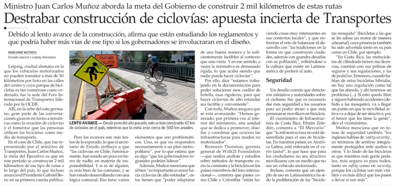 EL MERCURIO – Debido al lento avance de la construcción, afirma que están estudiando los reglamentos y que podría haber más vías de este tipo si los gobernadores se involucraran en el diseño.