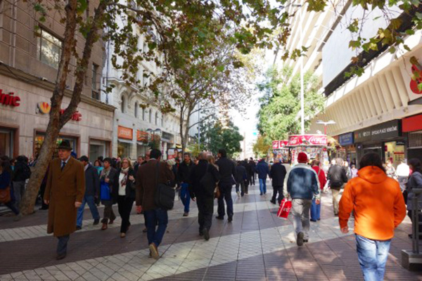 EL MERCURIO – Municipalidad busca fomentar que la gente se desplace caminando, mejorando el estándar de espacios para el peatón. Eso contrasta con zonas de mobiliario en mal estado, fachadas rayadas y comercio ambulante.