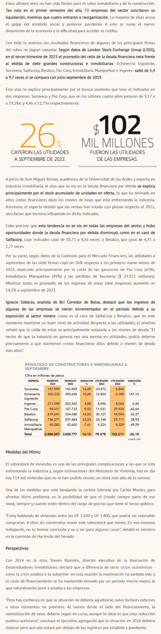 Fuente: Diario Financiero, Jueves 23 de Noviembre de 2023