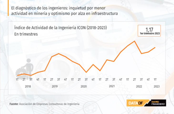 Lo anterior, en un contexto donde el Índice de Actividad de la Ingeniería (ICON) –que se basa en horas hombres- alcanzó un valor de 1,17 durante enero-marzo, lo que implica una disminución de 0,9% en el último año y un avance de 2,8% frente a lo ocurrido en octubre-diciembre pasado.