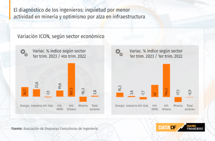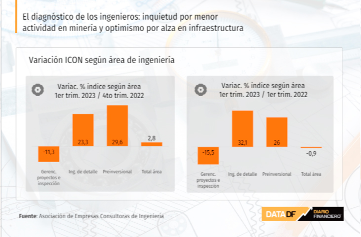 DIARIO FINANCIERO – Un escenario disímil enfrentó la actividad de las empresas consultoras de ingeniería durante el primer trimestre del año. Mientras la minería sumó nuevas caídas al comparar con el mismo período de 2022, la infraestructura general dio algunas señales positivas.