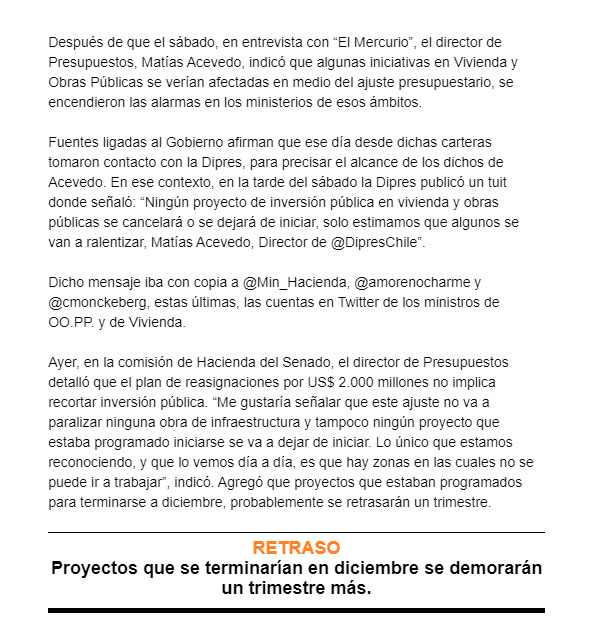 EL MERCURIO – Descartó que se cancelen o dejen de iniciar proyectos en esos ámbitos