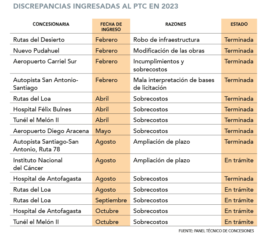 DIARIO FINANCIERO – El número de discrepancias ingresadas por las sociedades concesionarias al Panel Técnico de Concesiones (PTC) sigue creciendo.
